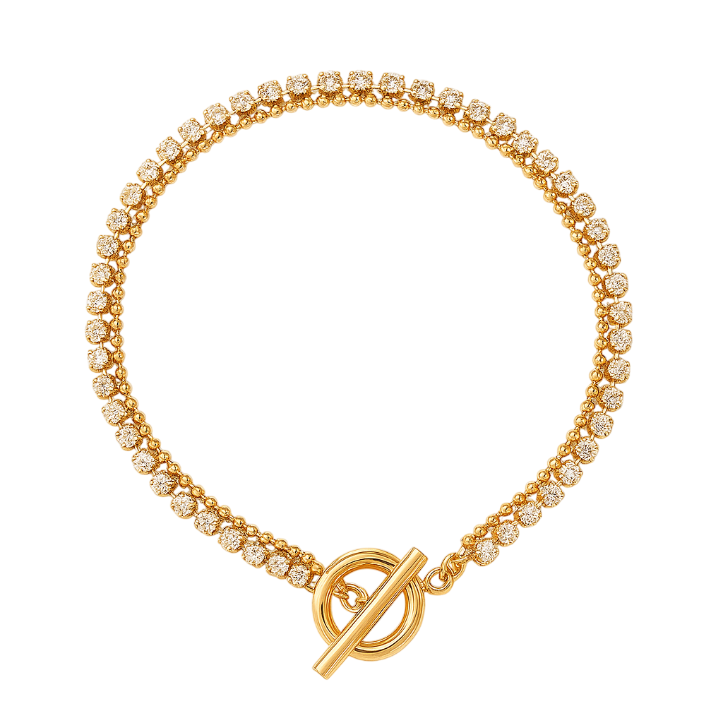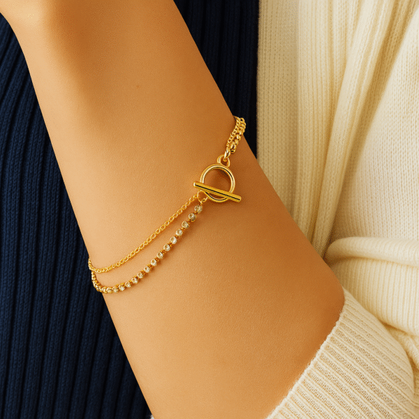 The sparkling rhinestone chain on your wrist is also beautiful.
