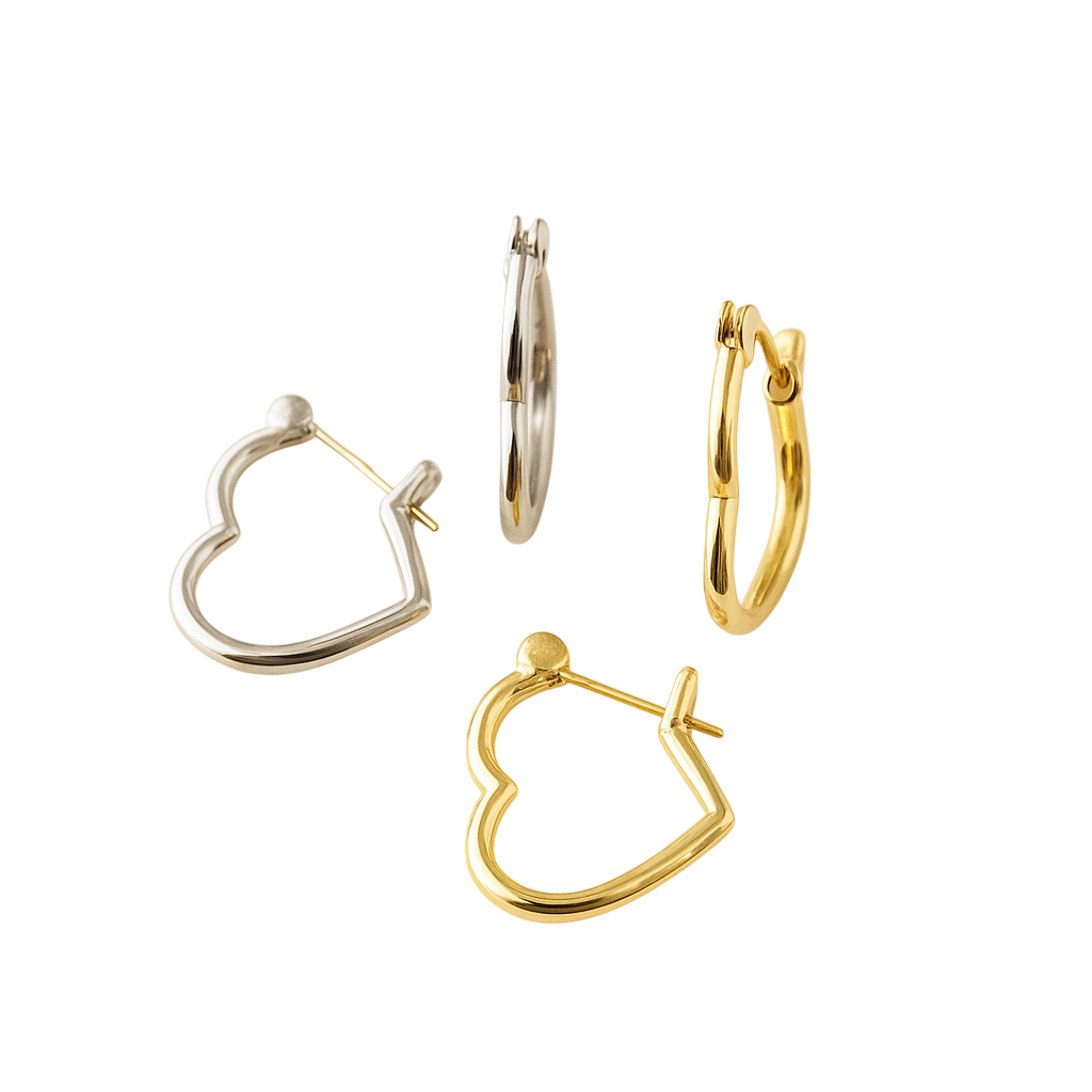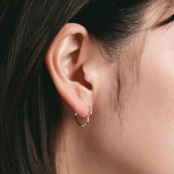 These 18K heart hoop post earrings change their appearance depending on the angle you look at them. Their delicate lines create a look that’s both cute and sophisticated. The catchless design makes them easy and comfortable to wear. This is a pair of earrings (one for each ear).
