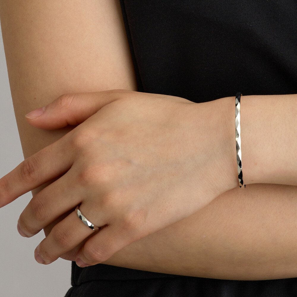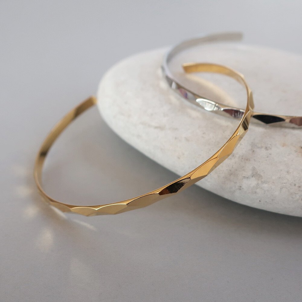 An adult bangle with only a simple cut design.