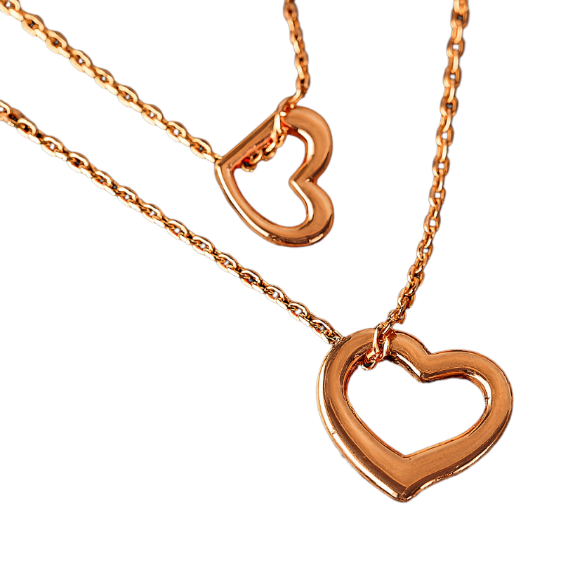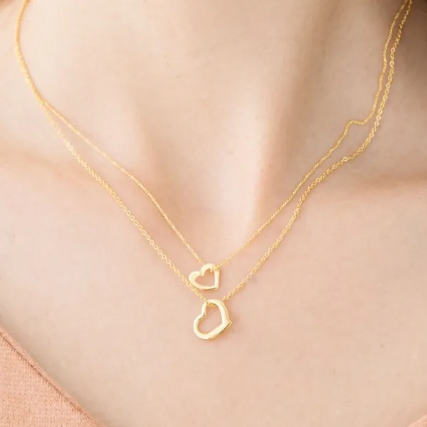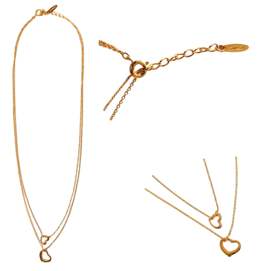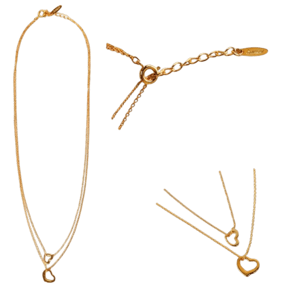 This is a cute, layered, two-strand necklace with a heart motif and a plump, three-dimensional shape.