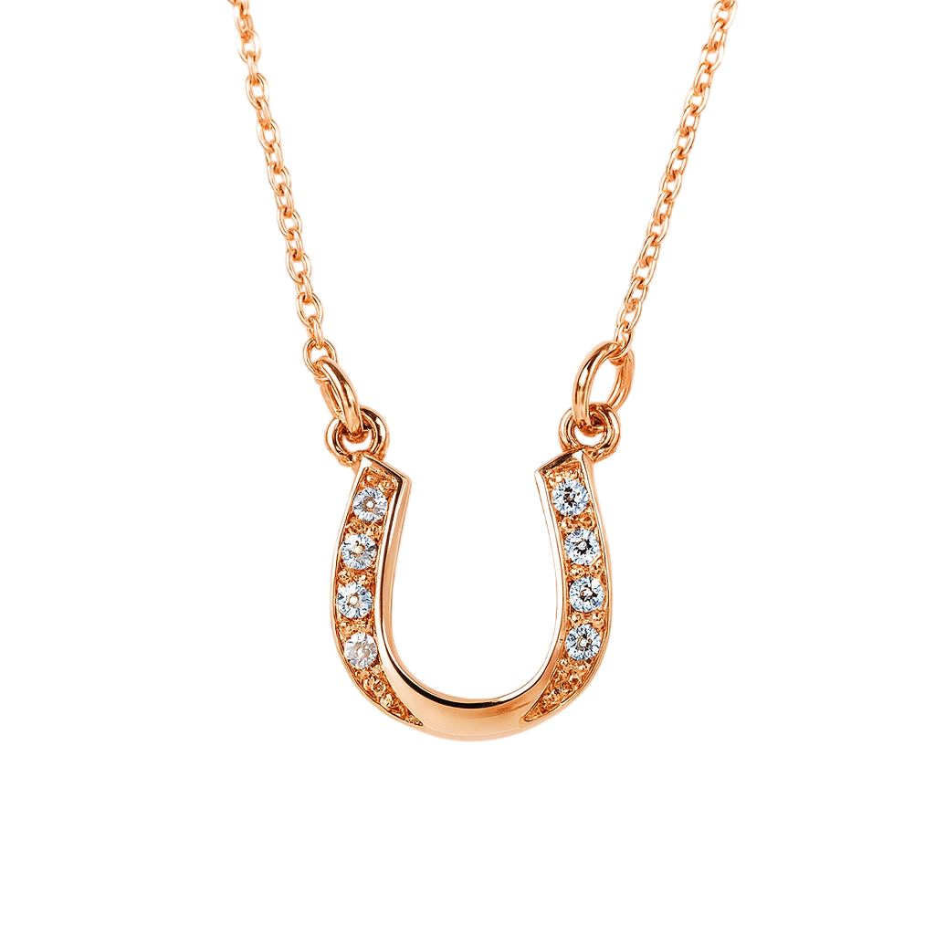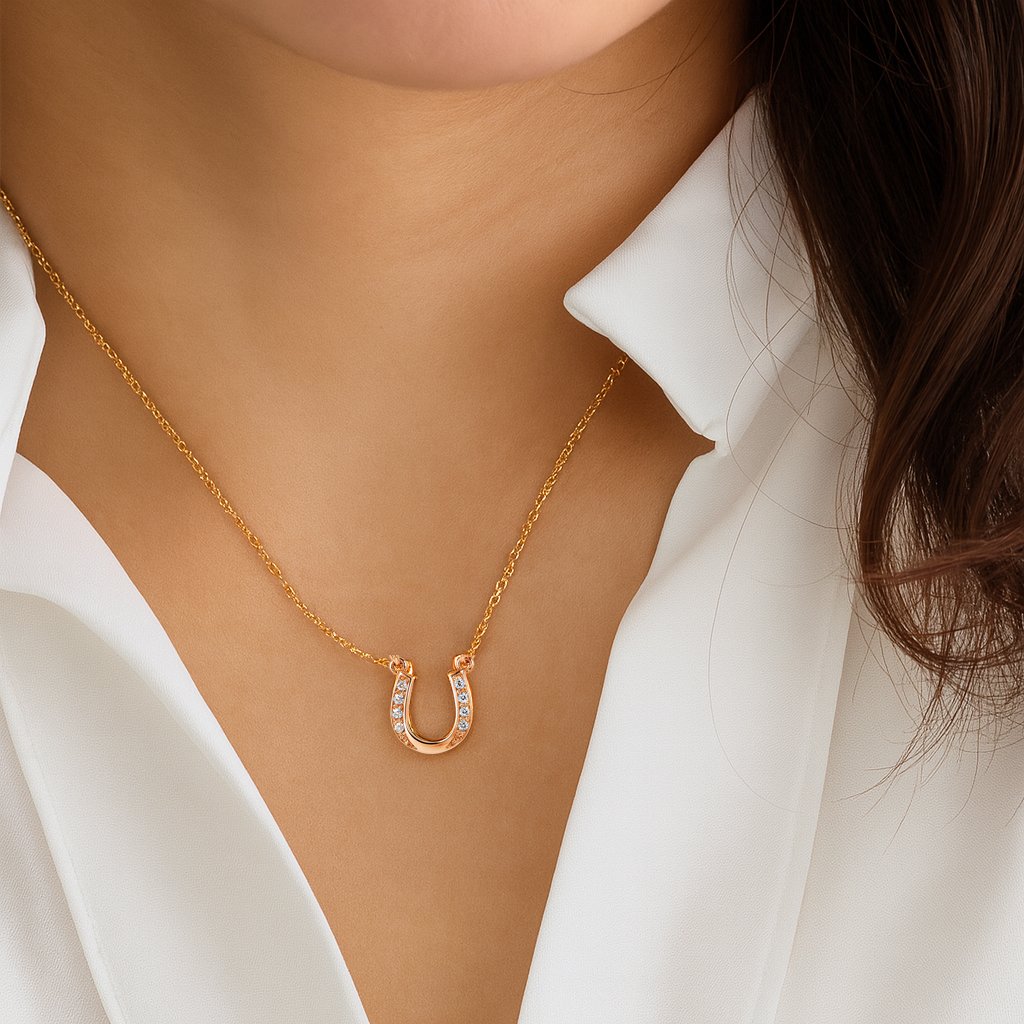 horseshoe motif is just the right size, and the sparkling jewels will make your décolleté look beautiful.